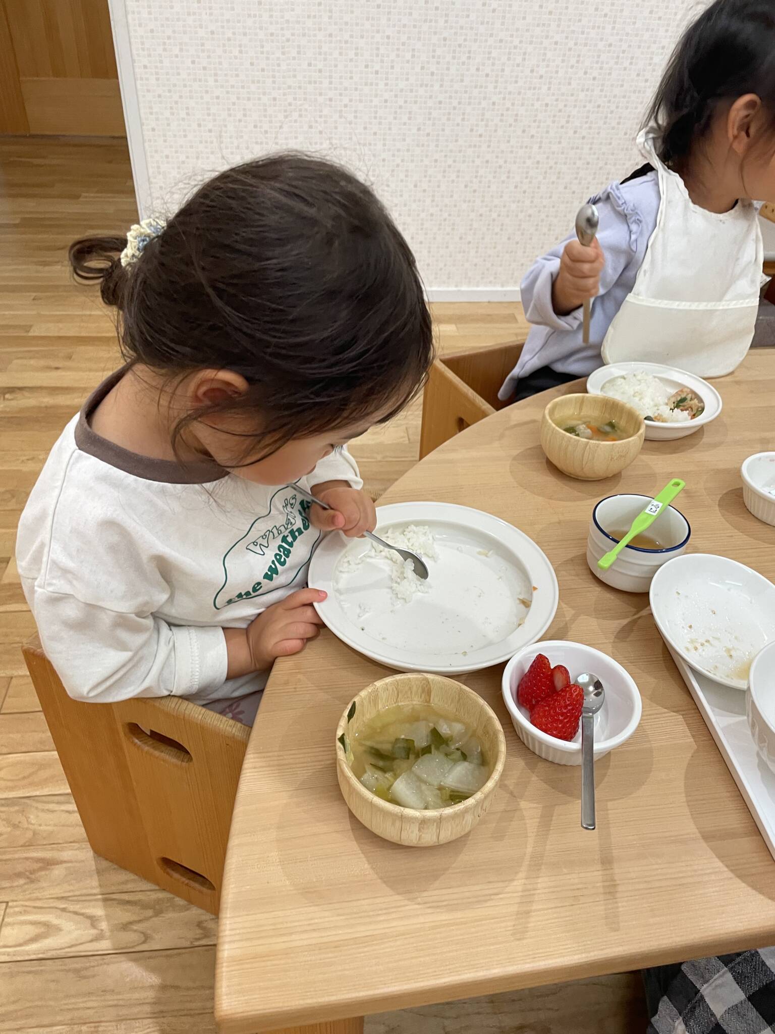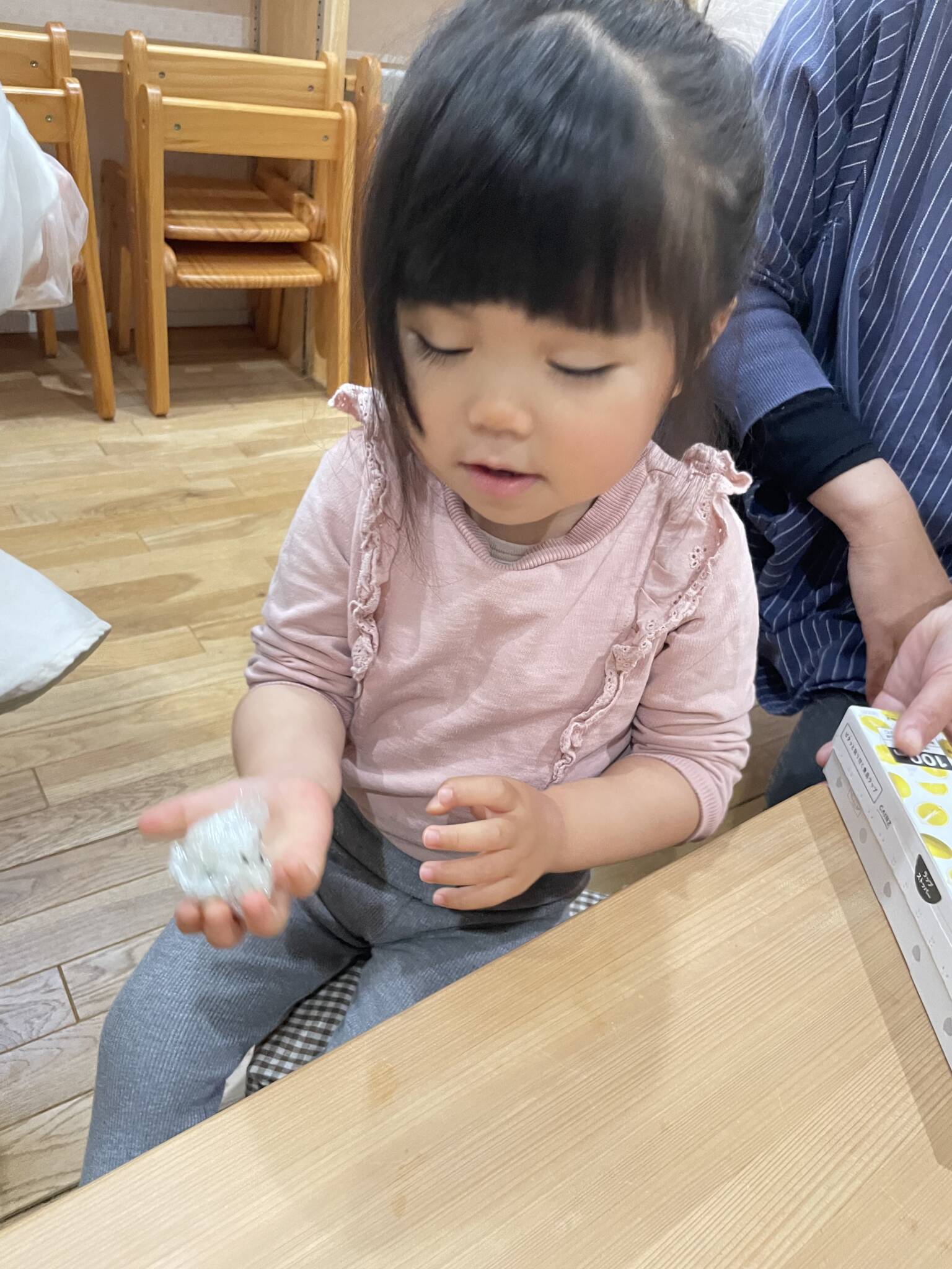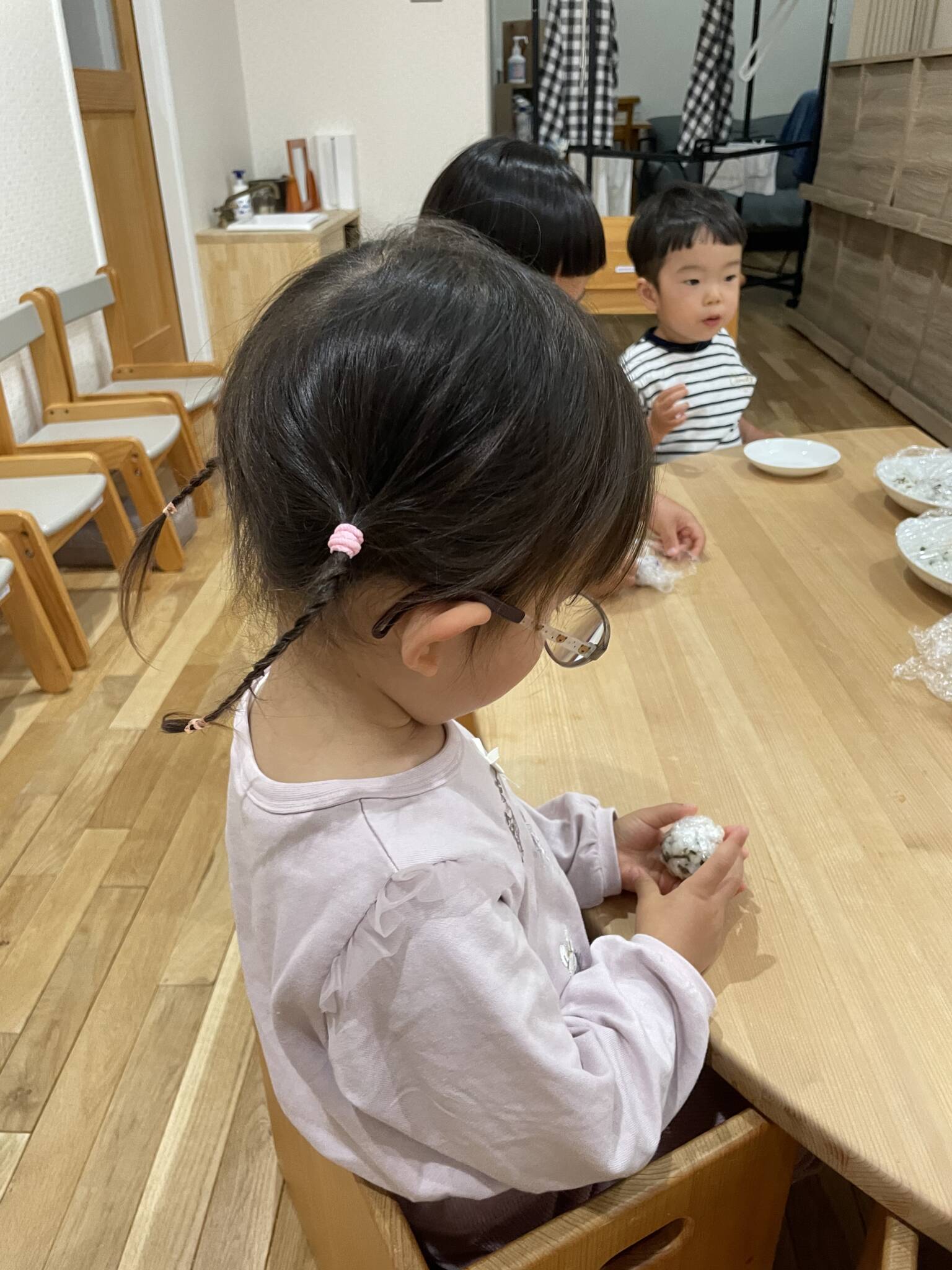 2歳児さん、1歳児さん自分でにぎにぎ🍙