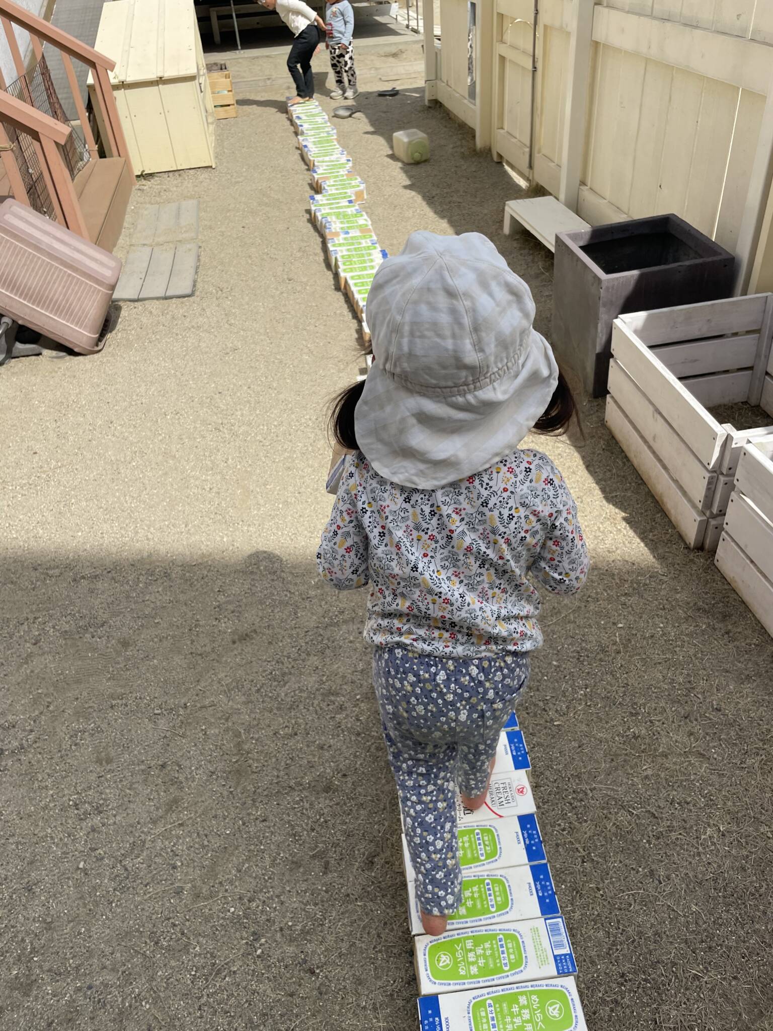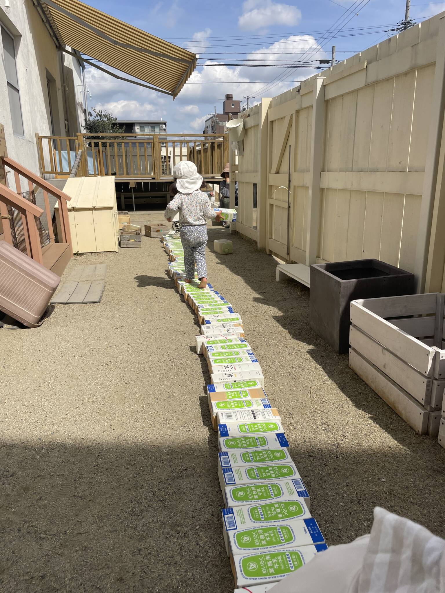 牛乳パックの長い橋が完成‼️